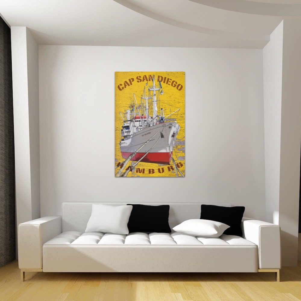 Museumsschiff CAP SAN DIEGO als Collage, maritime Motive in klassischer Gestaltung als stilvolle Kunstdrucke für Wandbilder auf Leinwand, Alu-Verbundplatte oder in Galeriequalität