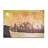 Stimmungsvoller Blick am Morgen im Sonnenschein auf die Docks der Werft von Blohm&Voss, Hamburg-Collagen mit Motiven aus dem Hafen als hochwertige Wandbilder