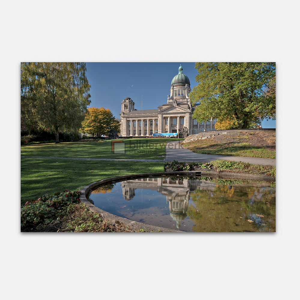 Ein ganz besonderer Blick in der Herbstsonne auf den Sievekingplatz mit dem Justizforum im Hintergrund, die besonderen Ansichten aus der Stadt Hamburg als Fotokunst für Wandbilder auf Leinwand, Alu-Verbundplatte und in Galeriequalität