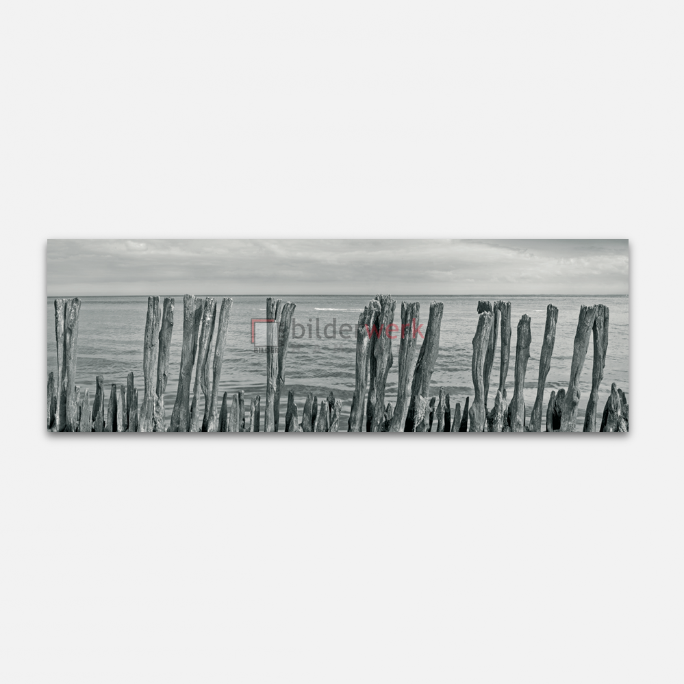 Schöner Blick auf eine alte Holzbuhne am Strand von Kellenhusen, maritime Motive in Schwarz-Weiss als stimmungsvolle Vorlagen für besondere Panoramabilder