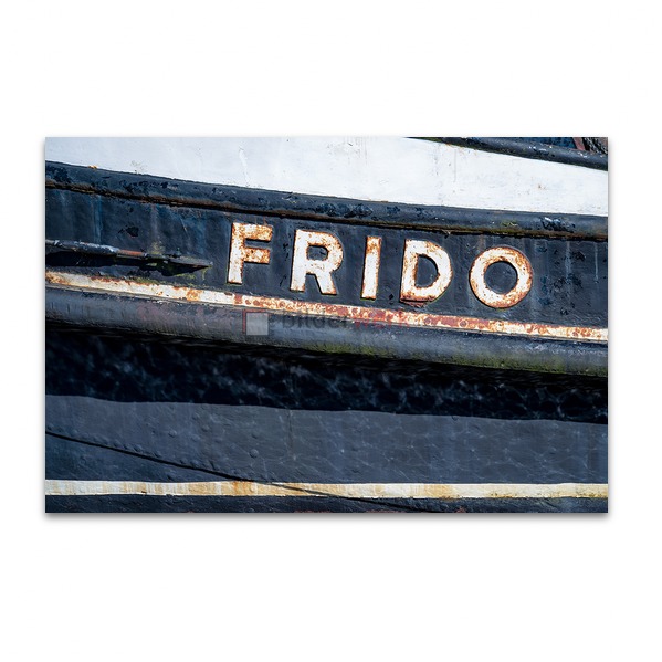 Ein schöner Blick auf die Bordwand des alten Hochseekutters Präsident Freiherr von Malzahn im Museumshafen Oevelgönne, maritime Fotokunst mit den besonderen Motiven von Schiffen in den Häfen des Nordens als stilvolle Wandbilder auf Leinwand, Alu-Verbundplatte oder in Galeriequalität
