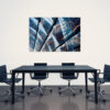 Ein gekonnt eingefangener Blick auf die Spiegelungen der Stahlkonstruktion der Freihafenelbbrücke im Dach der Station Elbbrücken, die außergewöhnlichen Motive aus Hamburg als Fotokunst für Wandbilder auf Leinwand, Alu-Verbundplatte und in Galeriequalität