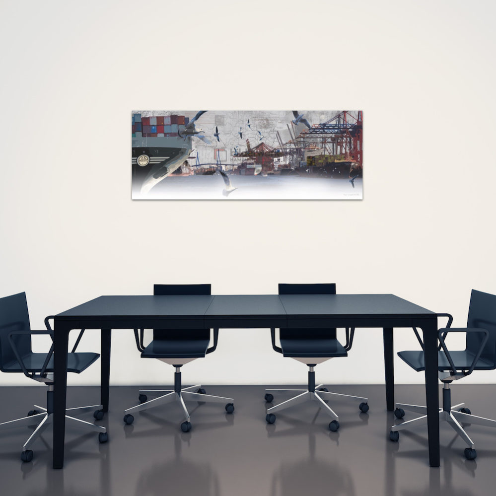 Besonders stimmungsvolle Collage mit Motiven aus dem Hafen, die besonderen Hamburg-Collagen als hochwertige Kunstdrucke auf Leinwand, Alu-Verbundplatte oder in Galeriequalität