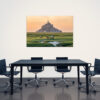Ein schöner Blick auf die einzigartige Kulisse von Mont Saint-Michel in der Normandie, die besonderen Impressionen von den schönen Orten und Landschaften der Welt als Fotokunst für Wandbilder auf Leinwand, Alu-Verbundplatte und in Galeriequalität
