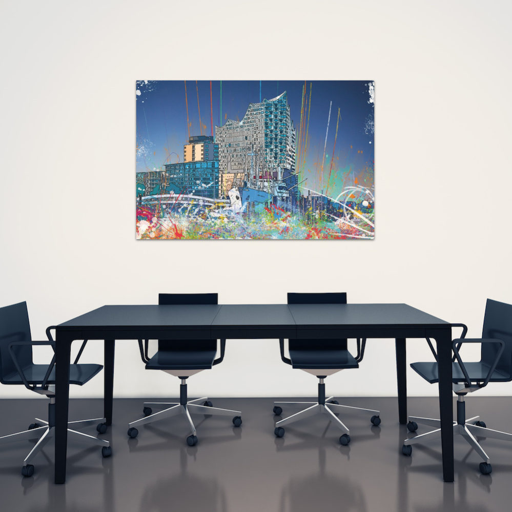 Die neue Elbphilharmonie als Pop-Art-Motiv, Wandbilder mit den Wahrzeichen aus Hamburg als moderne und hochwertige Kunstdrucke aus Leinwand, Alu-Verbundplatte oder in Galeriequalität