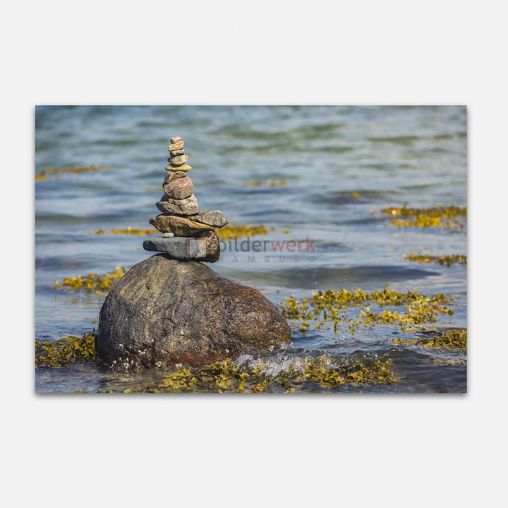 Stein-Pyramide an der Ostseeküste der Halbinsel Holnis, maritime Impressionen von der Ostseeküste als dekorative Wandbilder